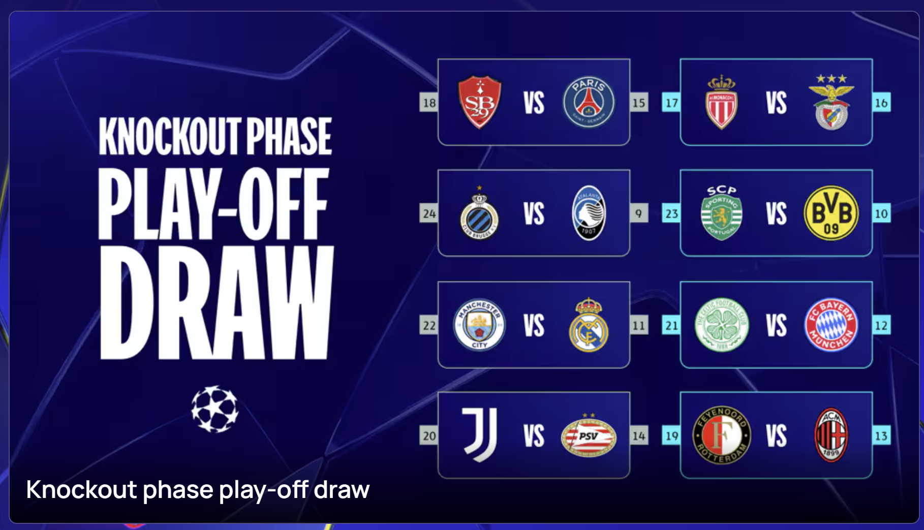 UEFA 챔피언스리그 16강 플레이오프 대진표 발표