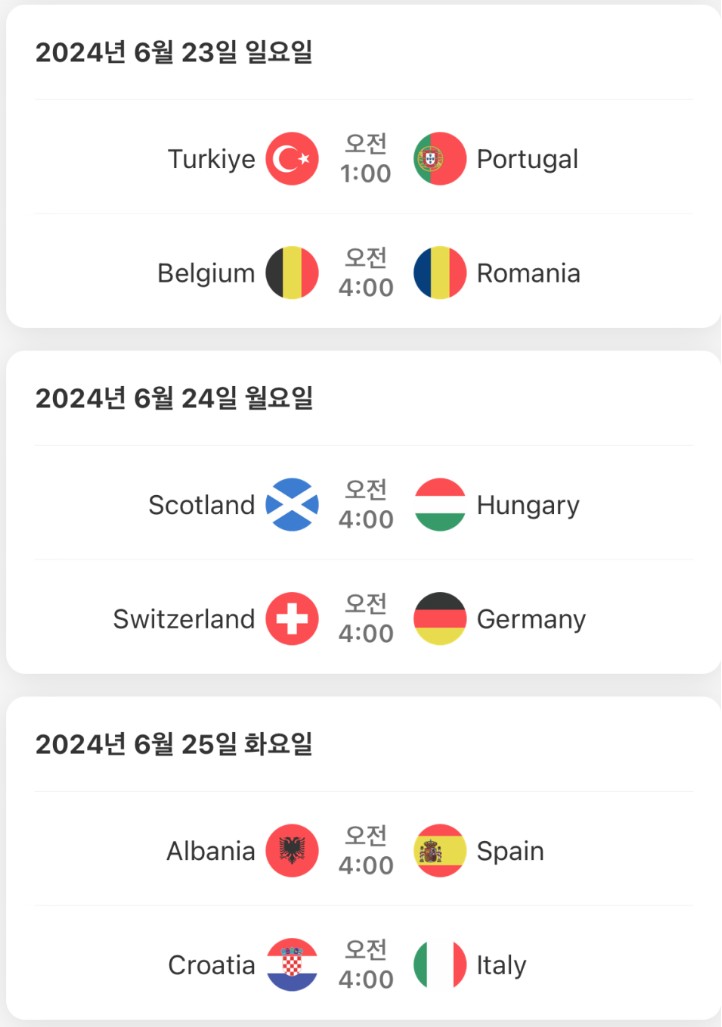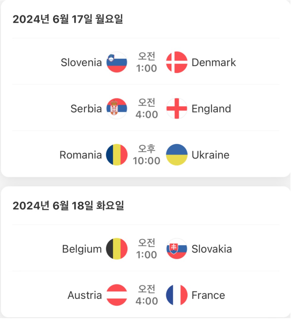 2024년 6월 15일 토요일 새벽 4시(한국시간 기준)에 진행되는 개최국 독일과 스코틀랜드의 경기를 시작으로 한달간의 유로 2024 대장정이 시작합니다. 유로 2024의 조편성과 경기일정을 살펴보겠습