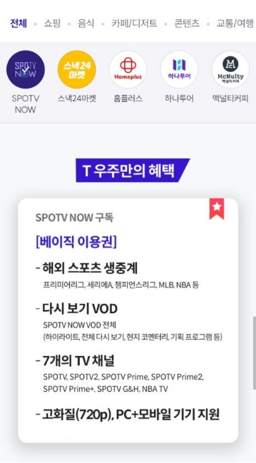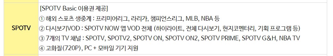 첫달 1000원 가입 이벤트가 있으나 SPOTVNOW는 해당되지 않는다. 연간이용권은 99000원이다. 하지만 SPOTVNOW외에 다음 혜택들이 추가로 주어지니 조금더 싼 느낌이 든다.