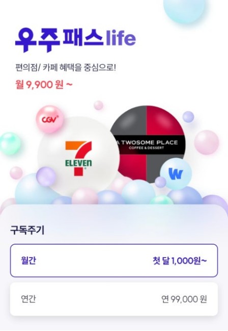 첫 달 100원/1,000원으로 쇼핑, 인터넷 동영상 서비스(OTT), 카페/편의점, 배달 등 구독 서비스를 시작해 보세요.