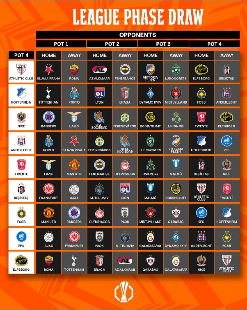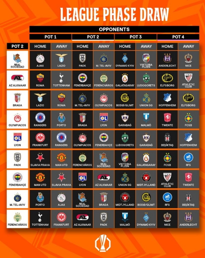 24-25 유로파리그 조추첨 결과 및 토트넘 유로파 일정 정리